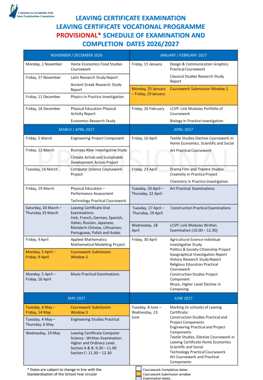 News & Updates HomePost-PrimaryBusinessEconomics Senior CycleNews & Updates news December 2025 Oide Recruitment news December 2025 Guidelines to support the completion of the Portfolio in Action Additional Assessment Component Leaving Certificate Life, Community and Work news November 2025 Coursework Rules and Procedures 2025-2026 news November 2025 Senior Cycle Redevelopment, Schools Information Note, November 2025, Edition 13 news September 2025 Business Alive Investigative Study-Sample Brief (2025) news September 2025 Leaving Certificate Examinations- Provisional Schedule of Examinations and Completion Dates 2026/2027 news September 2025 Leaving Certificate Economics-Research Study 2026 news September 2025 Curriculum Specification for Leaving Certificate Life, Community and Work news September 2025 Curriculum Specification for Leaving Certificate Accounting Sign up to receivenews and updates Sign Up