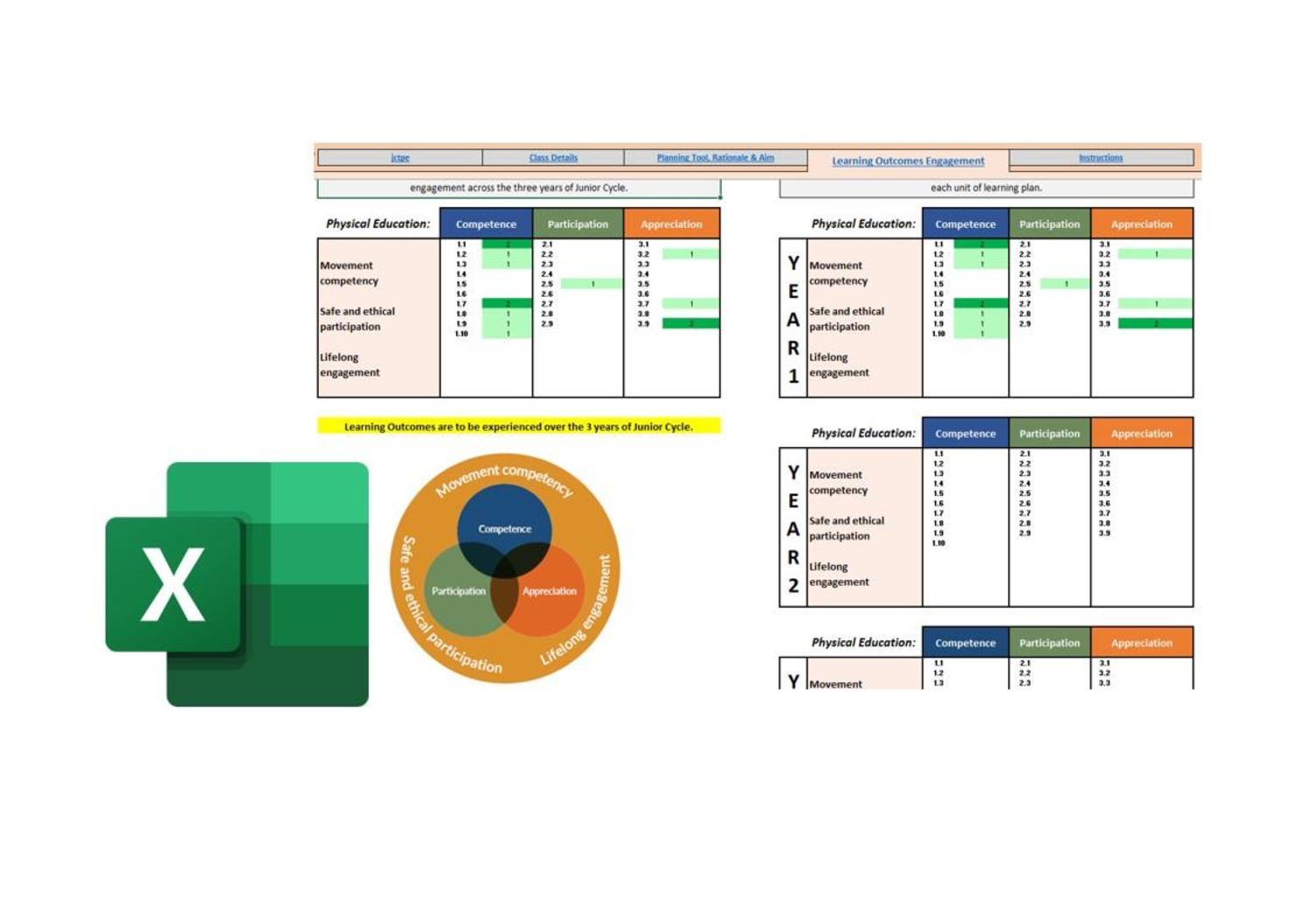 Excel Digital Planner for Junior Cycle Physical Education Specification 2022